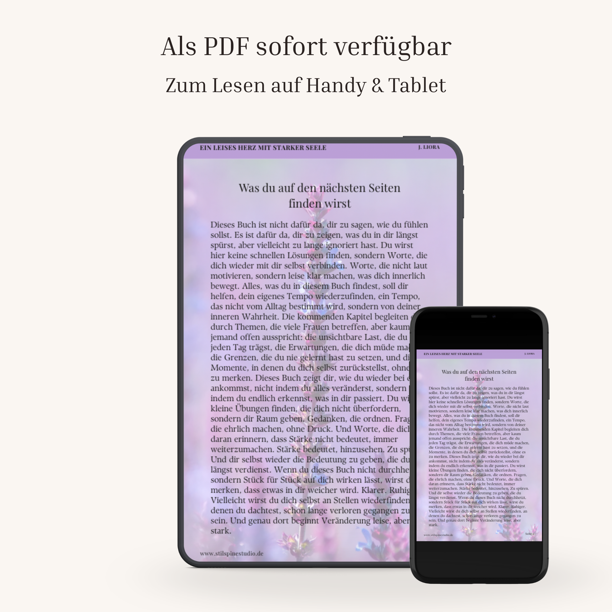 Stattdessen findest du ruhige Texte, persönliche Gedanken und innere Monologe, die Raum schaffen für das, was im Alltag oft keinen Platz hat: Überforderung, Müdigkeit, Zweifel, Selbstwert, Grenzen und eine Form von Stärke, die nicht laut sein muss.